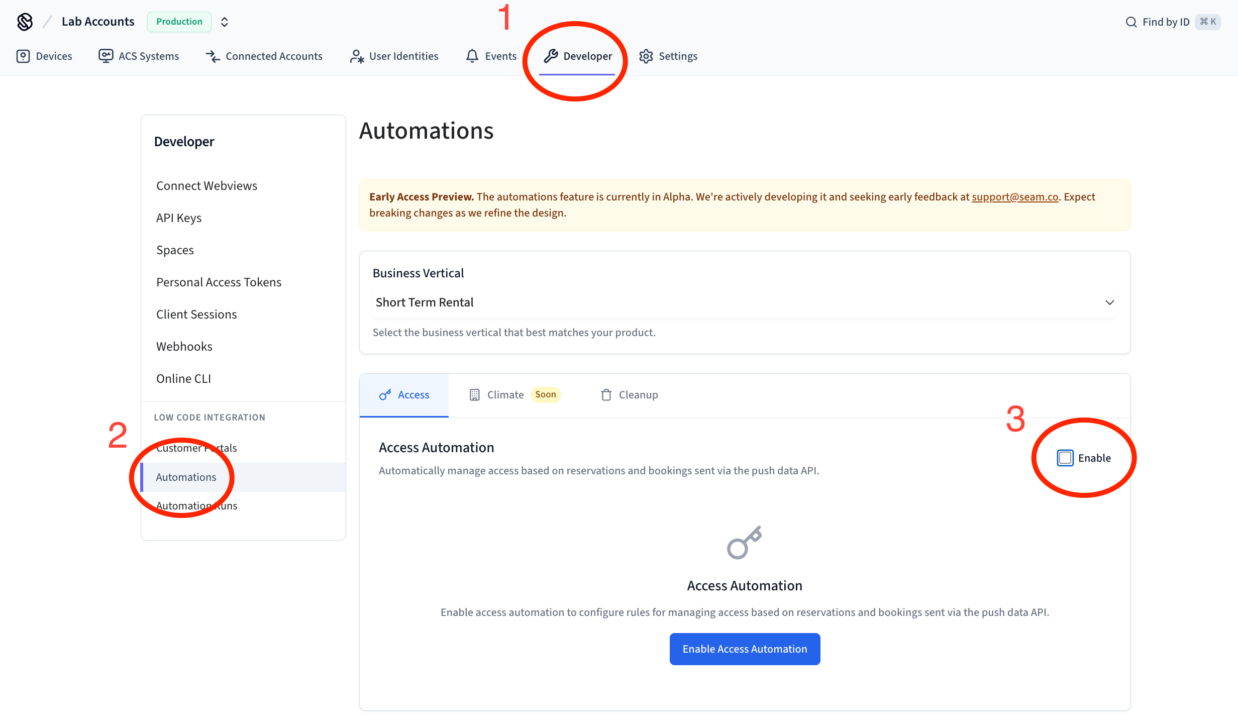 1. You enable Automations in [Console](https://console.getseam.com/).